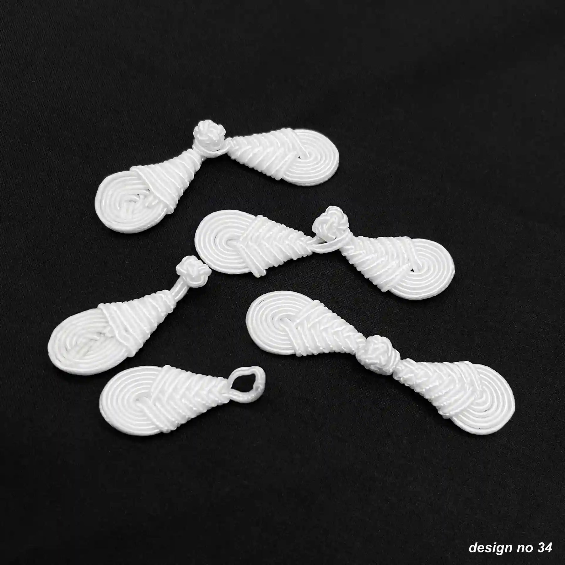 This ornamental closure is easy to sew onto garments and provides a secure fastening while adding a unique decorative element. It is widely used on kurtis, jackets, coats, dresses, cheongsam, qipao, and ethnic wear, as well as in costume design and craft projects. The intricate knot pattern gives a refined handmade appearance that elevates any outfit.