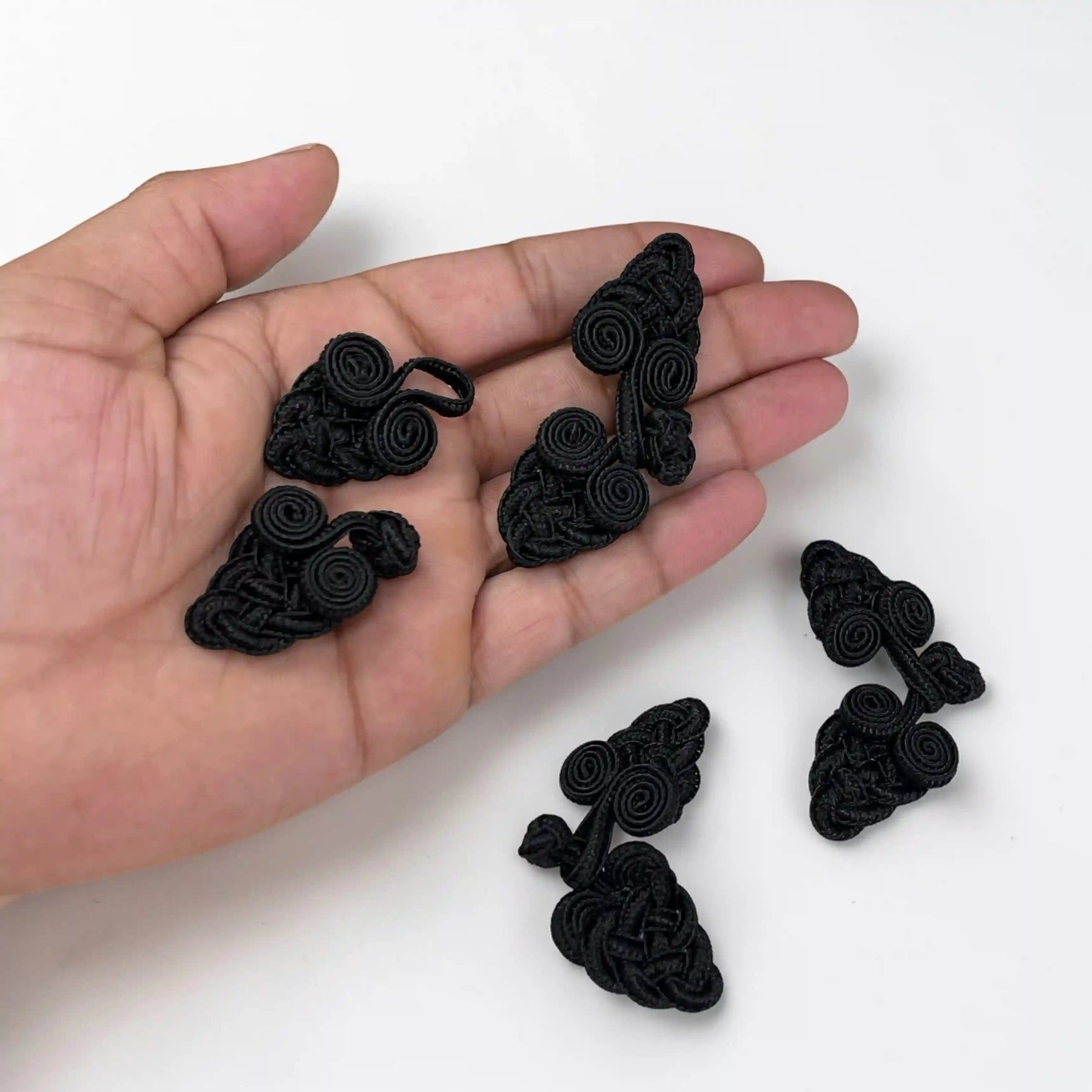 This ornamental closure is easy to sew onto garments and provides a secure fastening while adding a unique decorative element. It is widely used on kurtis, jackets, coats, dresses, cheongsam, qipao, and ethnic wear, as well as in costume design and craft projects. The intricate knot pattern gives a refined handmade appearance that elevates any outfit.