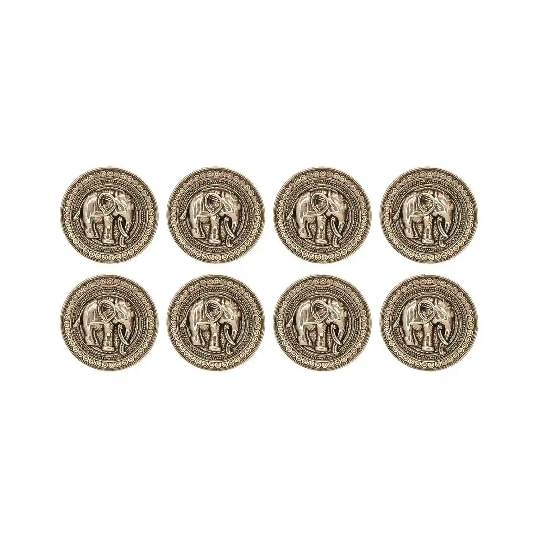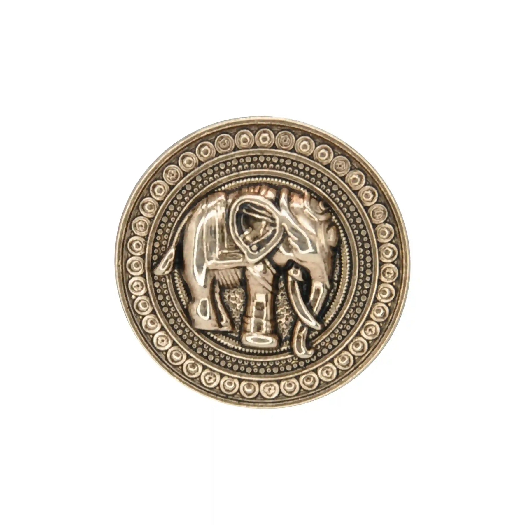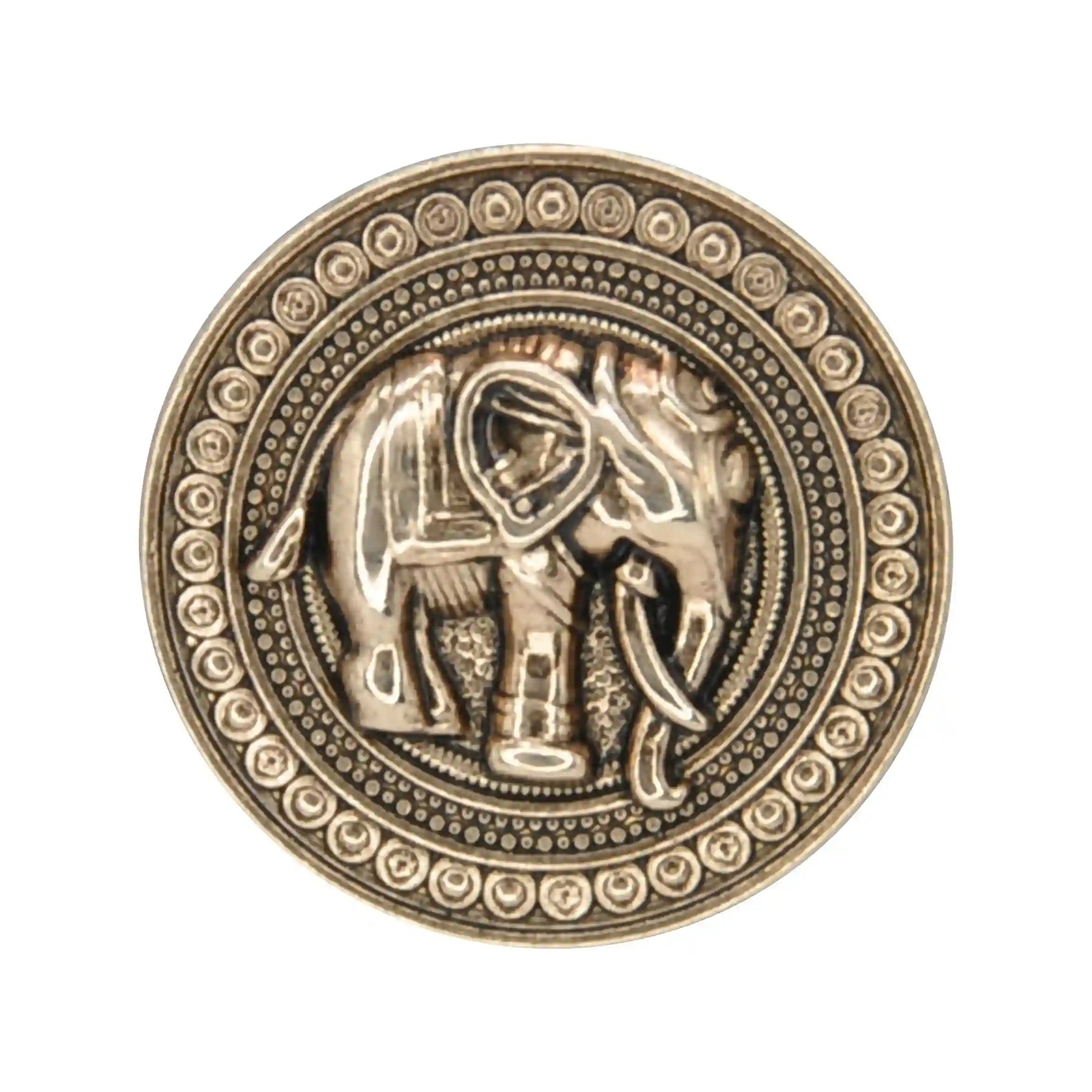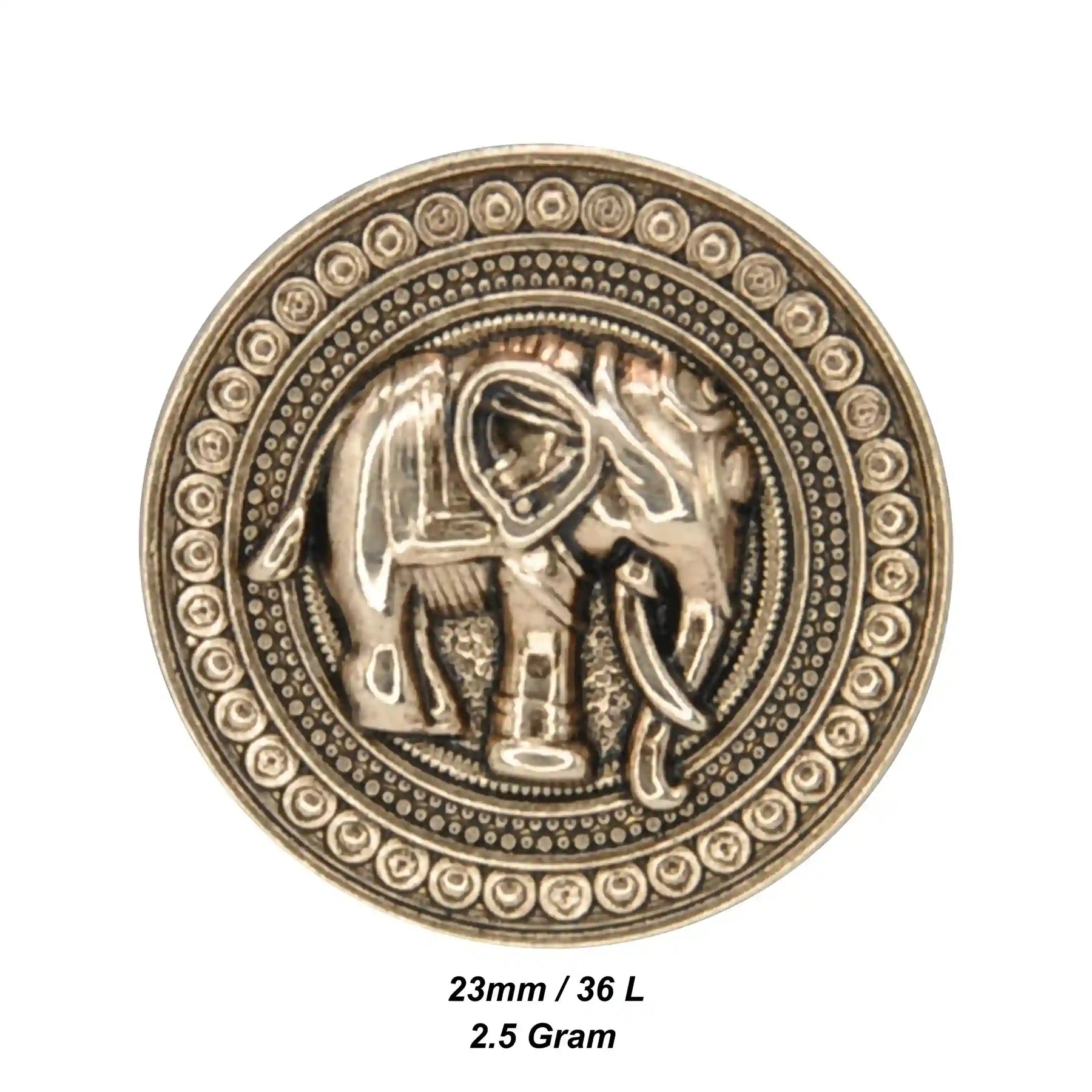 Enhance your garments with Good Luck Elephant Motif Metal Button, perfect for adding a premium, eye-catching look. These buttons are both stylish and durable, and come in an antique gold color with an edge-to-edge design, crafted from premium, high-quality metal.