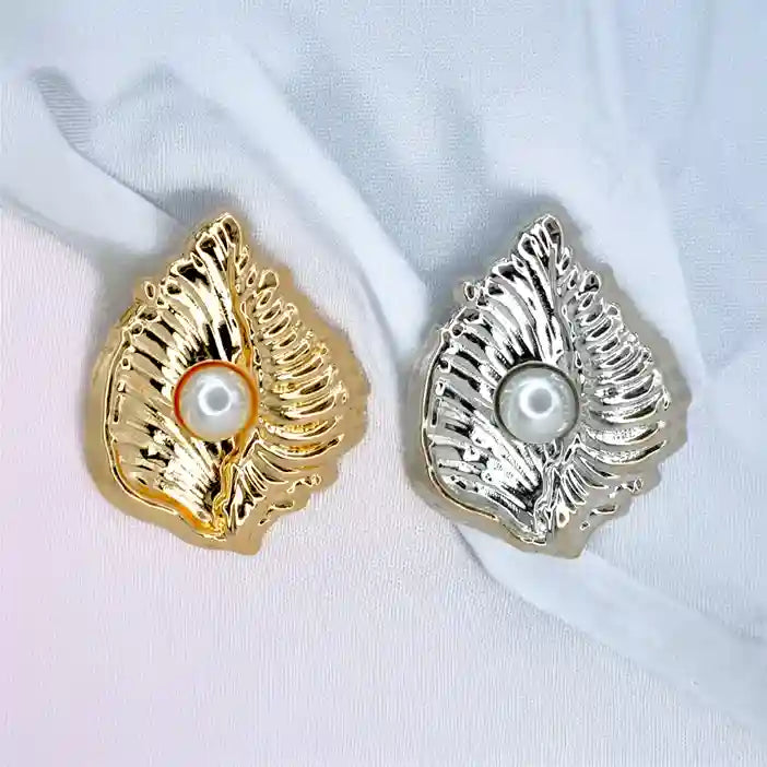 Enhance your garments with Scallop Shell Stud Pearl Button, perfect for adding a premium, eye-catching look. These buttons are both stylish and durable, and come in an antique silver & gold color with an edge-to-edge design, crafted from premium, high-quality metal.