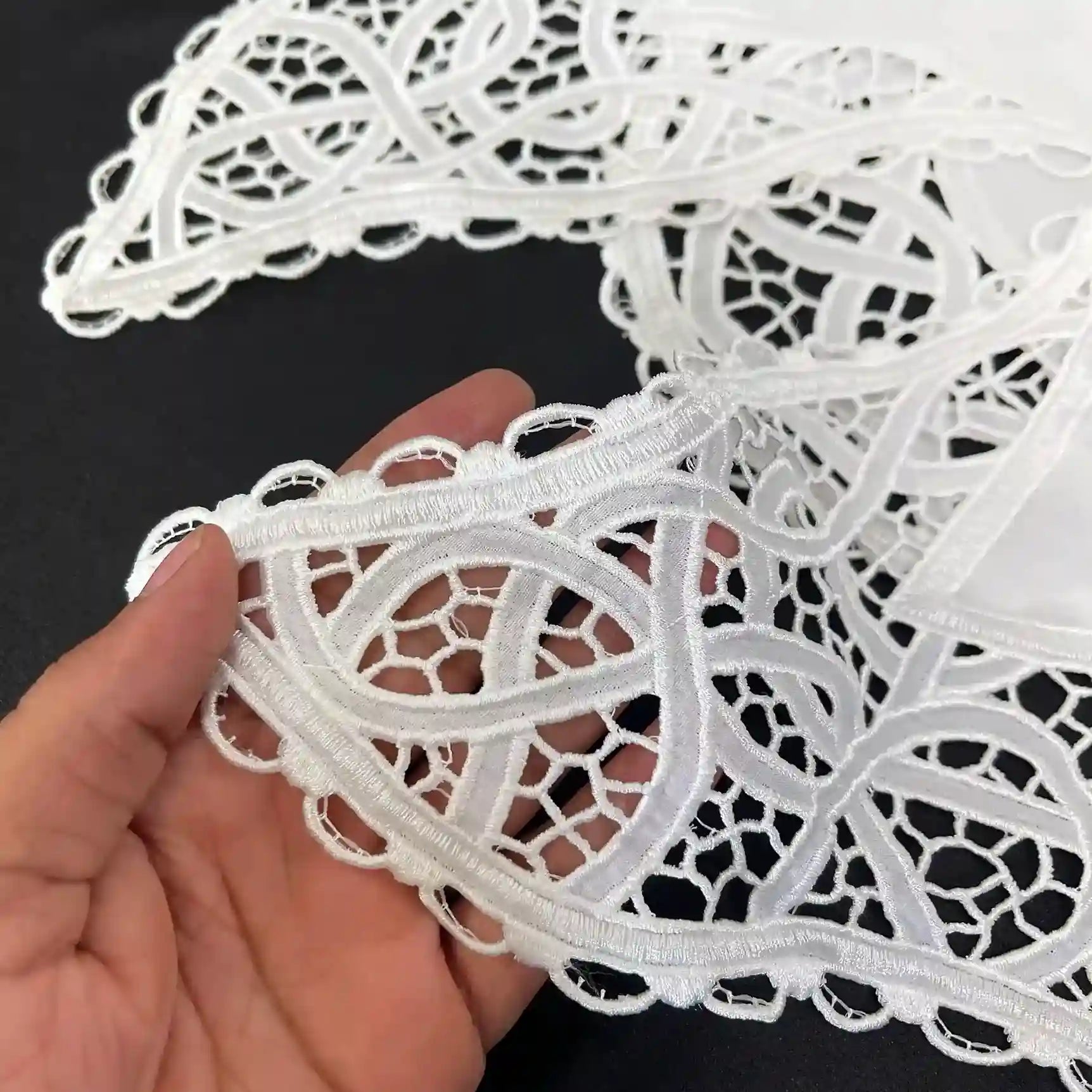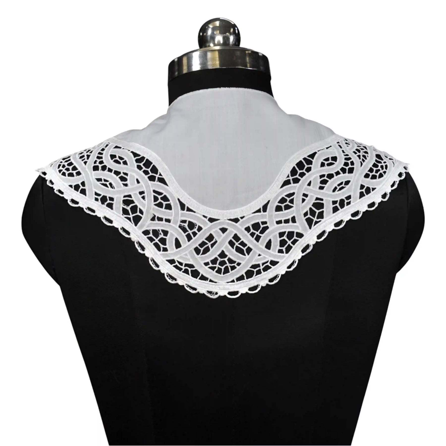 This sew-on neckline collar is made from good-quality fabric with beautiful embroidery and cutwork designs. It is perfect for making dresses, kurtis, blouses, tops, gowns, and ethnic wear look more stylish. You can easily stitch it onto any garment for an instant new look. Great for DIY projects, costumes, or giving old clothes a fresh and classy touch.