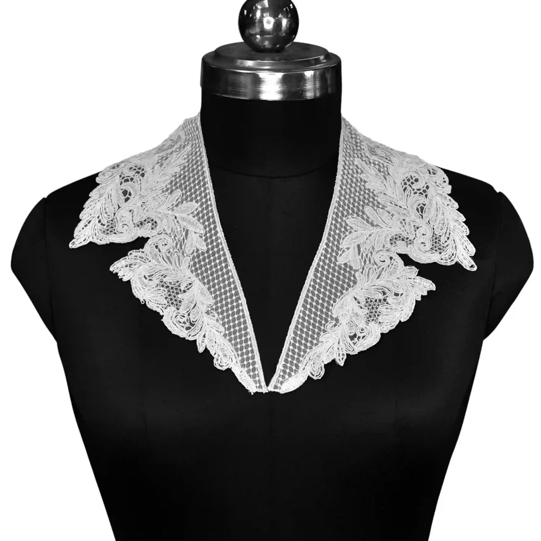 This sew-on neckline collar is made from good-quality fabric with beautiful embroidery and cutwork designs. It is perfect for making dresses, kurtis, blouses, tops, gowns, and ethnic wear look more stylish. You can easily stitch it onto any garment for an instant new look. Great for DIY projects, costumes, or giving old clothes a fresh and classy touch.