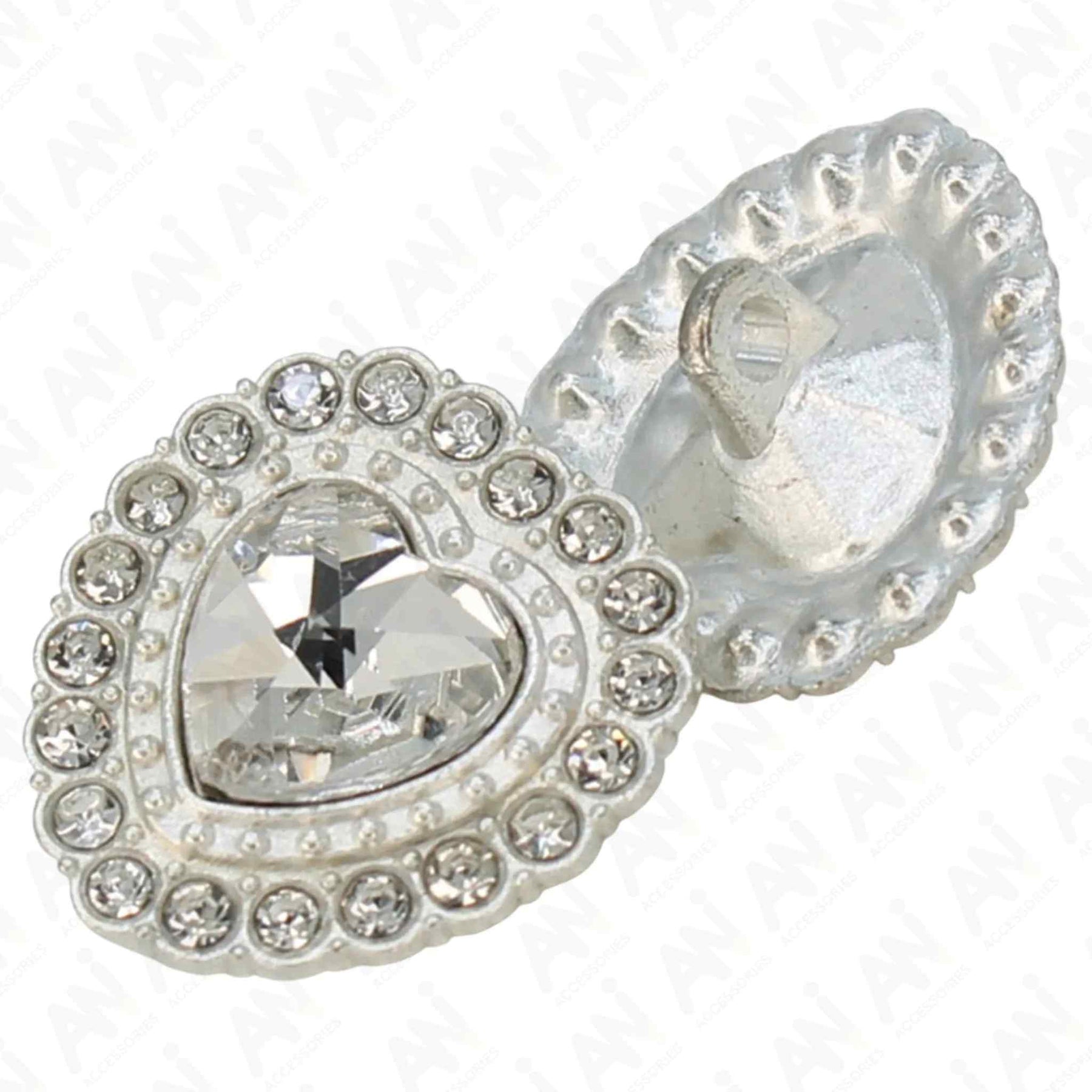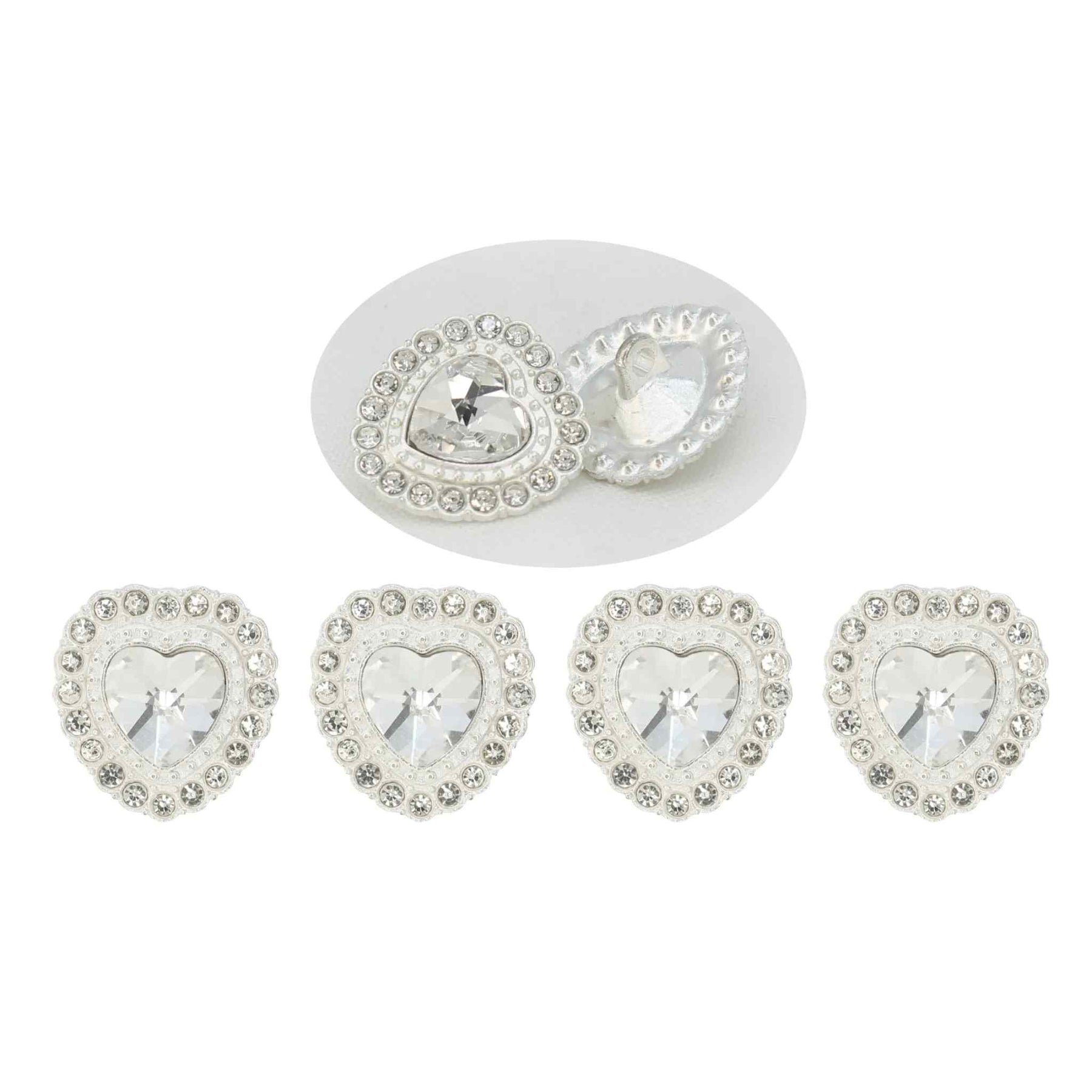 Enhance your garments with Heart Shape Rhinestone Metal Buttons, perfect for adding a premium, eye-catching look. These buttons are both stylish and durable, and come in silver color with an edge-to-edge design, crafted from premium, high-quality metal.