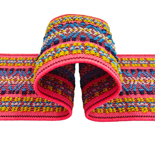 Explore our designer elastic collection for dresses and DIY projects. We have knitted, woven, jacquard, chenille, and more. Crafted with premium elastic threads for durability and stretch. These woven elastic or knitted elastics are easy to sew on any type of garment for adding comfort, fit, and a stylish finish to your outfit.