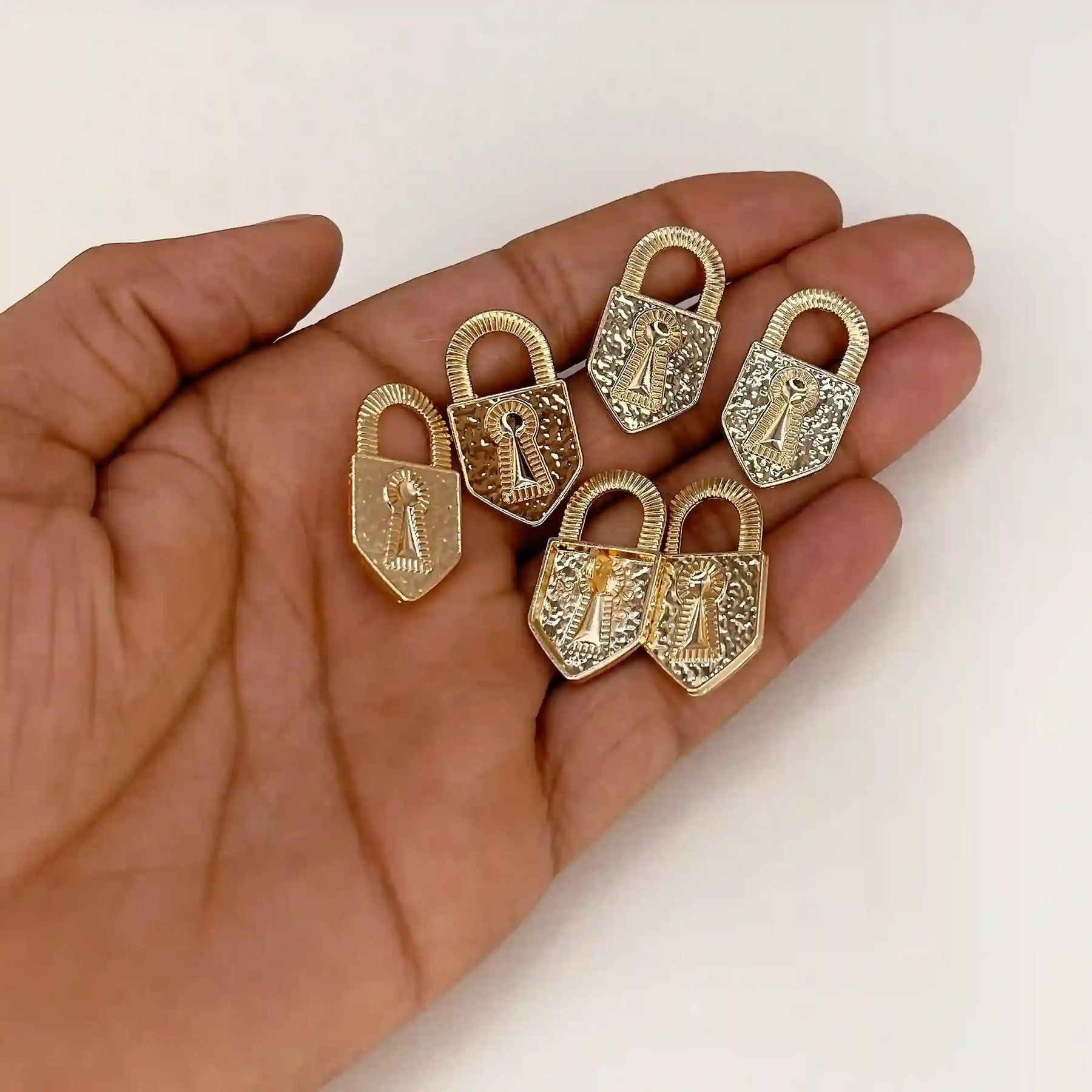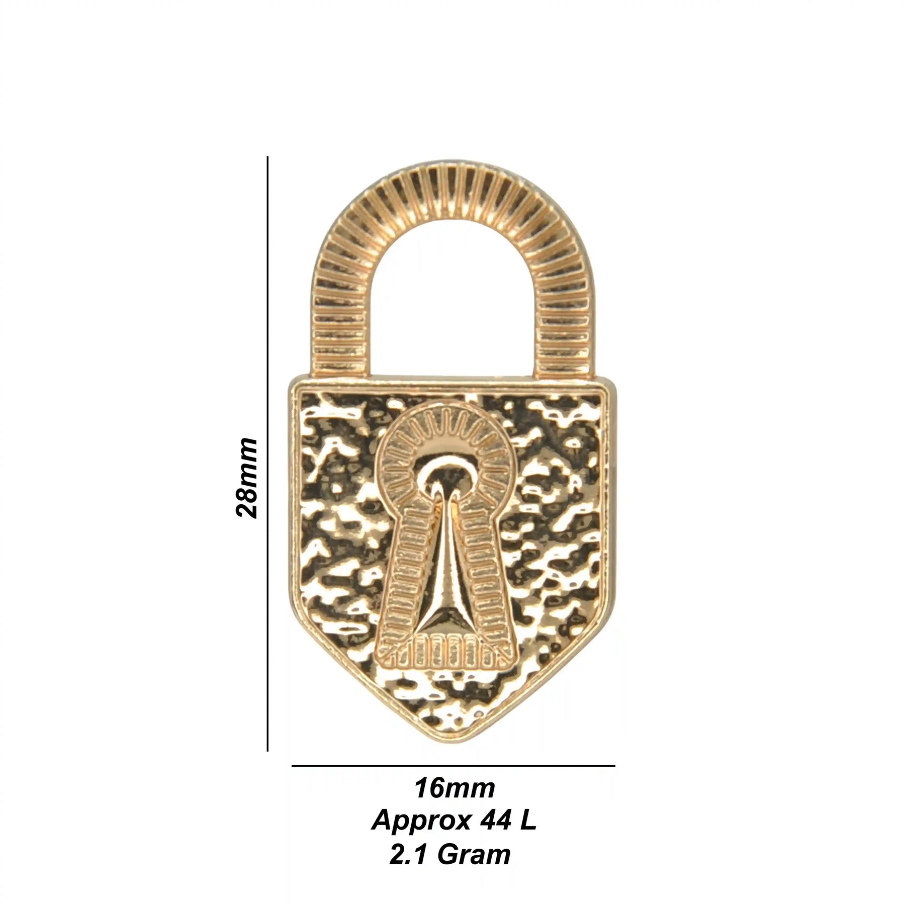 Enhance your garments with Decorative Padlock Shank Metal Button, perfect for adding a premium, eye-catching look. These buttons are both stylish and durable, and come in an antique gold color with an edge-to-edge design, crafted from premium, high-quality metal.