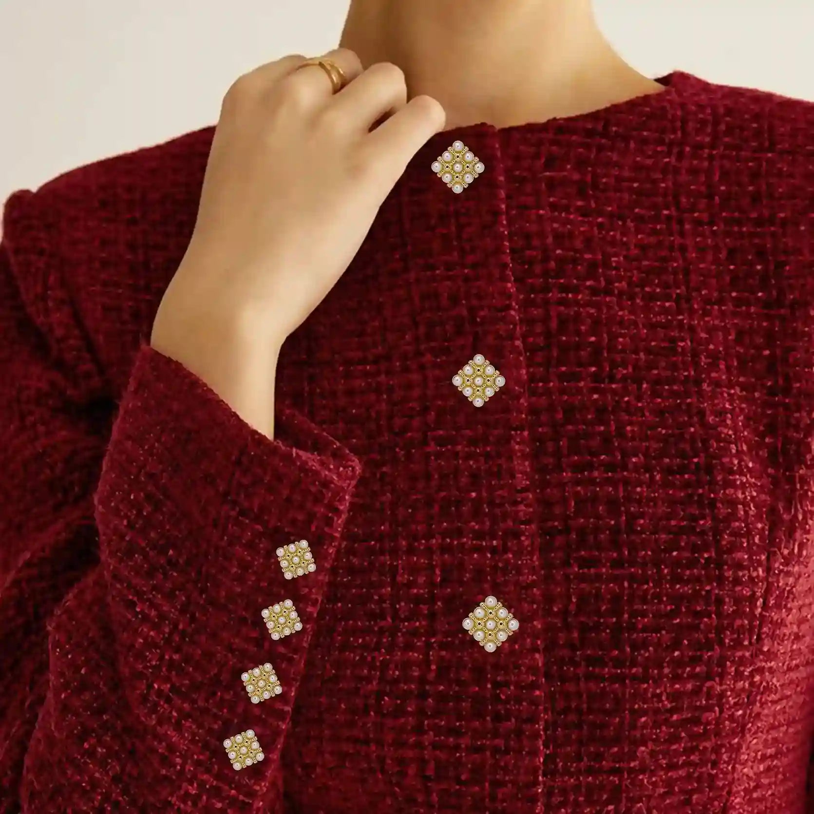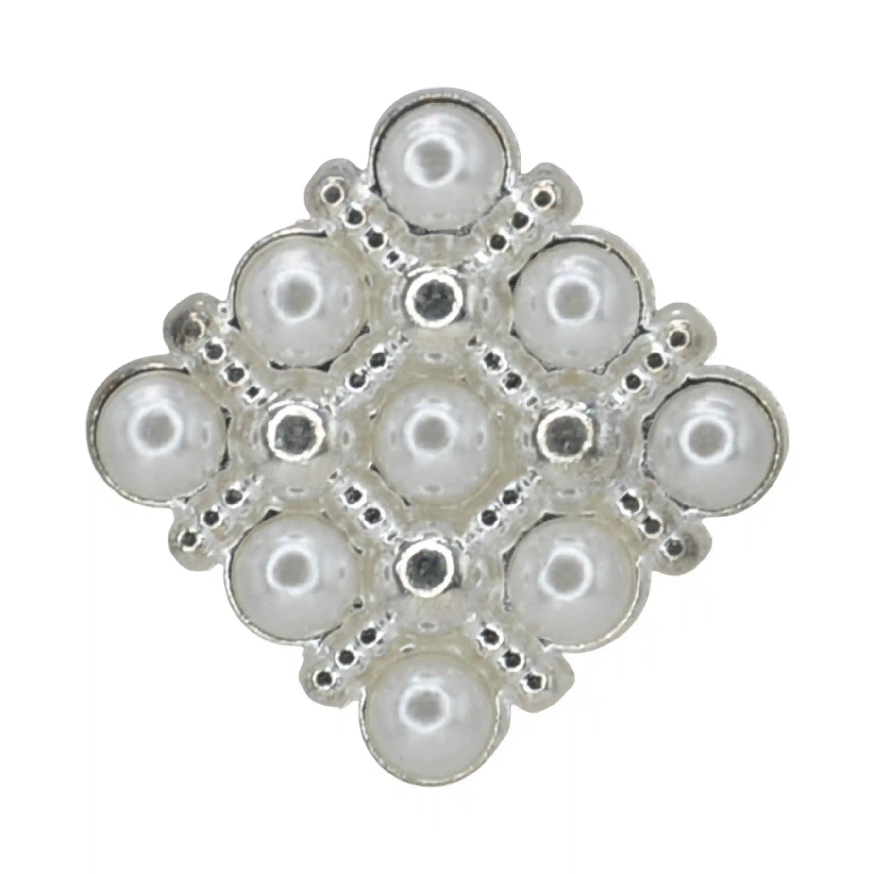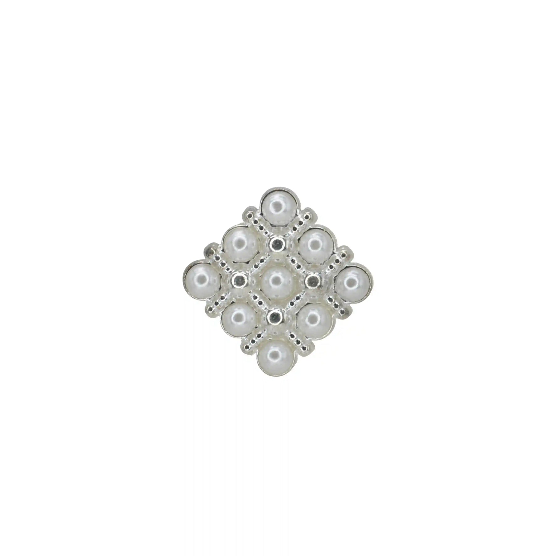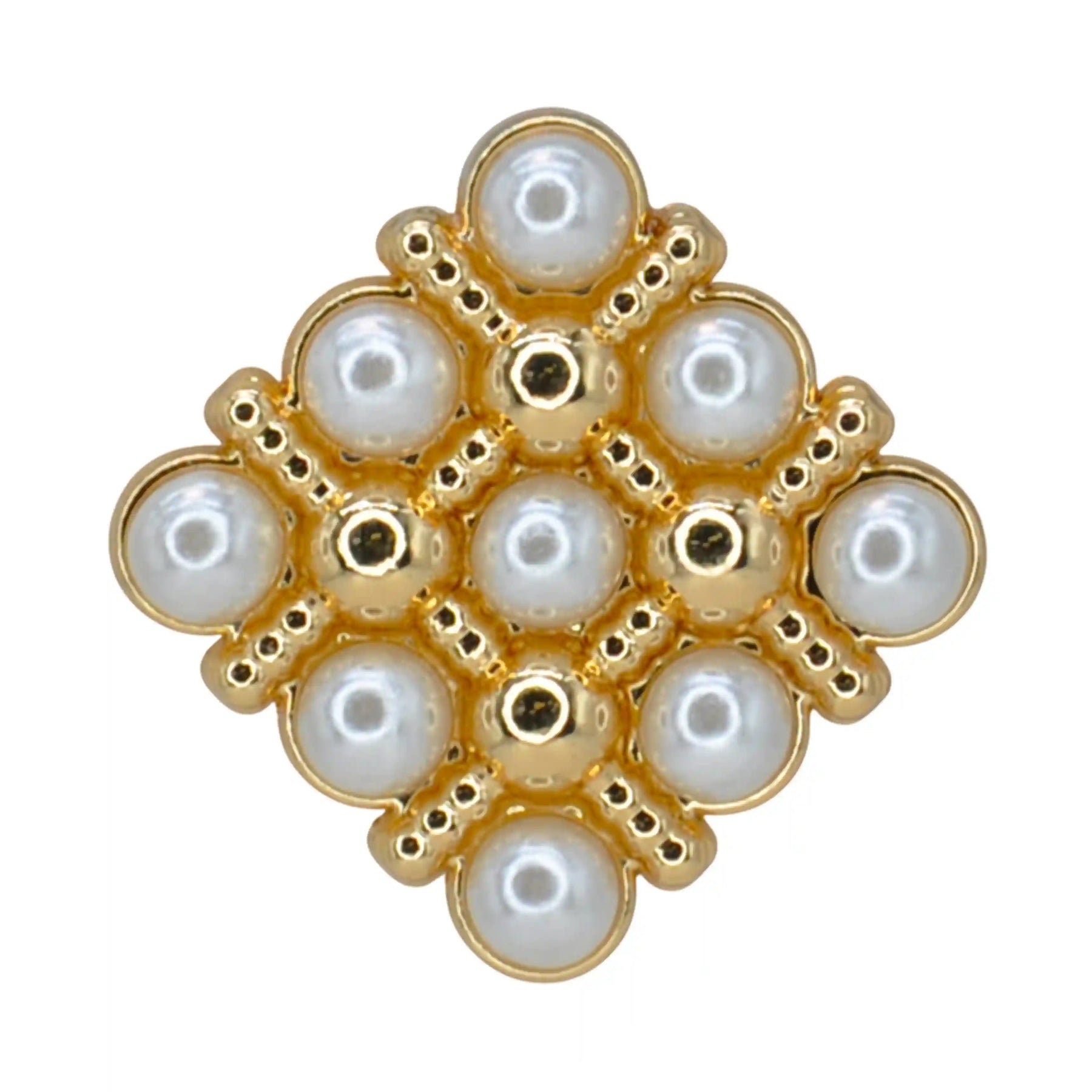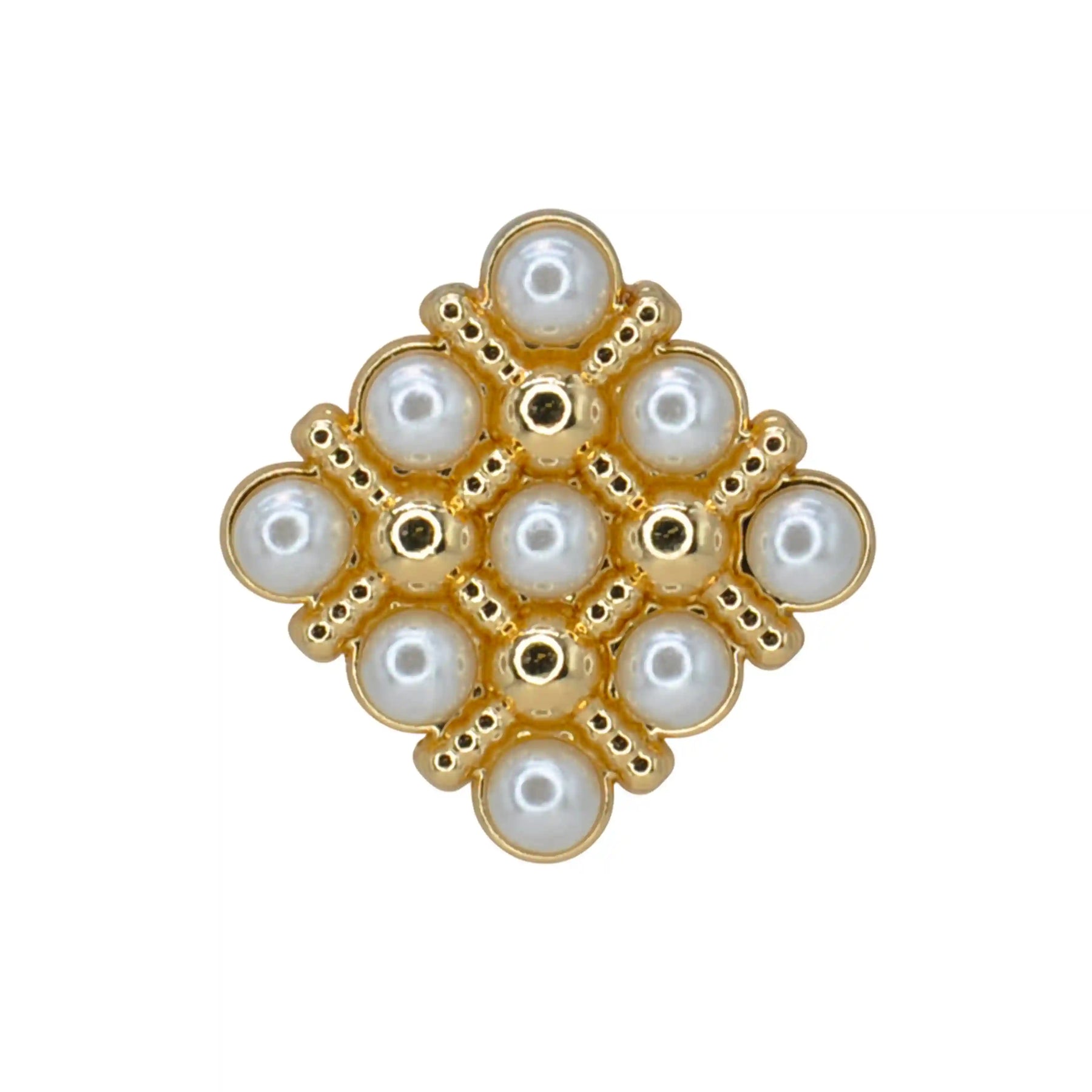Enhance your garments with Pearl Square Medallion Button, perfect for adding a premium, eye-catching look. These buttons are both stylish and durable, and come in a White & Gold color with an edge-to-edge design, crafted from premium, high-quality metal.