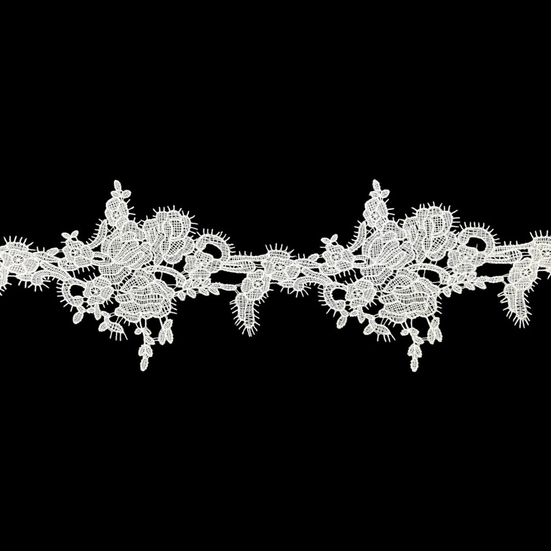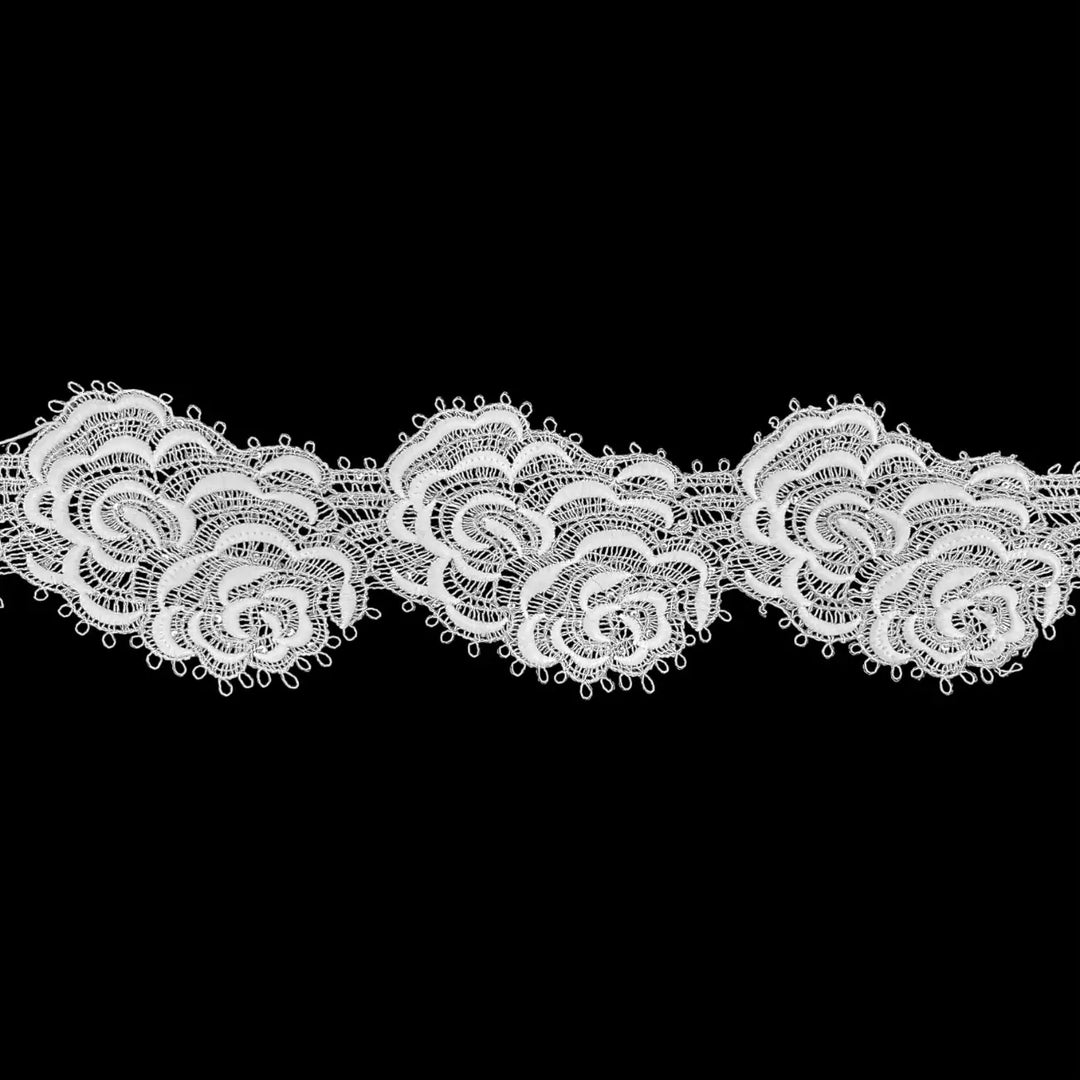 Ivory Bloom Embroidered Lace Trim | 7cm (3 inches) 70mm