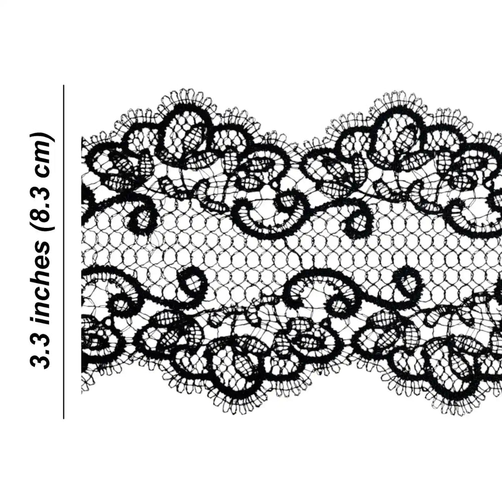 Black Floral Design Lace | Width 8.6cm (3.4 inches) 86mm