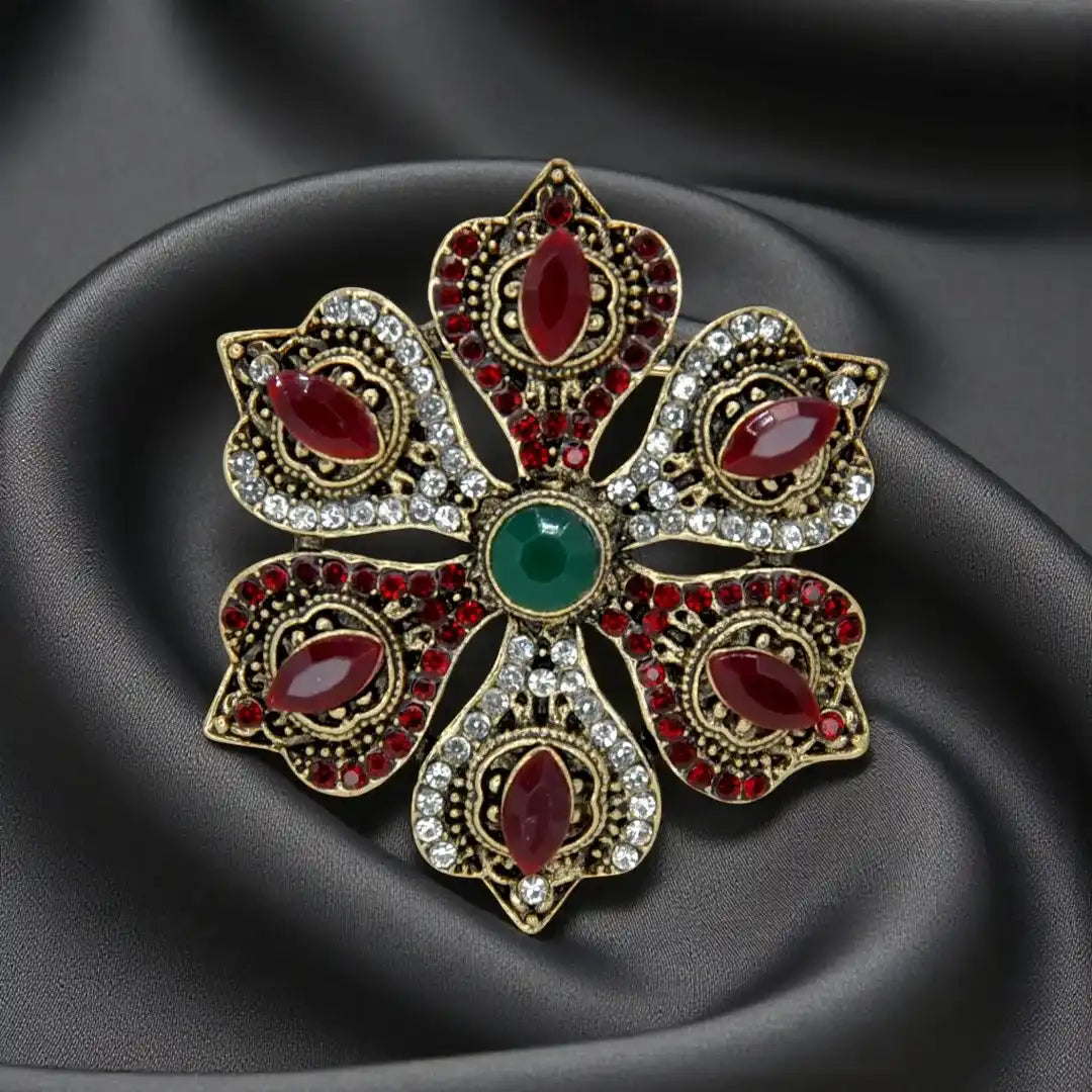 These elegant vintage-style brooches are crafted with intricate detailing and embellished with sparkling crystals and colorful gemstones. Each piece reflects timeless artistry and sophistication, making them perfect for elevating any outfit. Ideal for sarees, coats, blazers, dresses, scarves, or handbags, these brooches add a touch of luxury and charm to both traditional and modern looks. Lightweight, durable, and beautifully finished, they are a must-have accessory for weddings, parties, and everyday elegance.