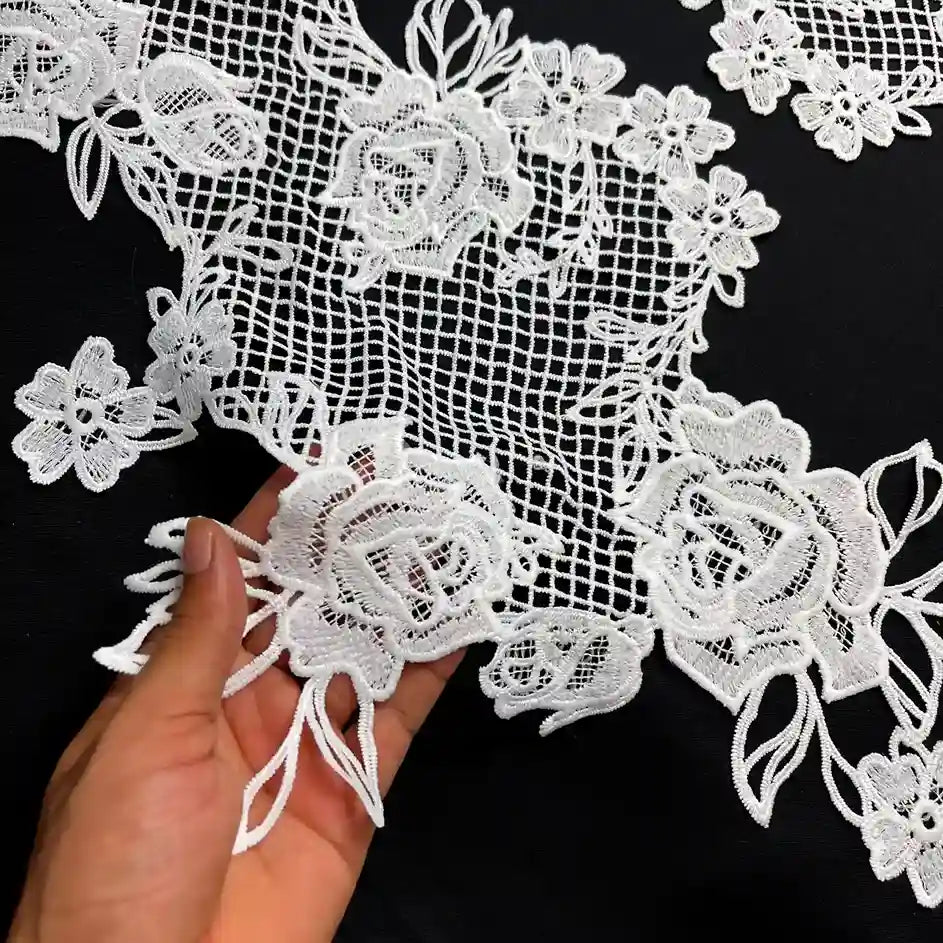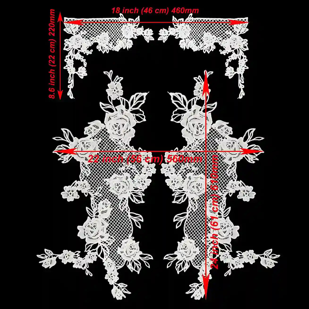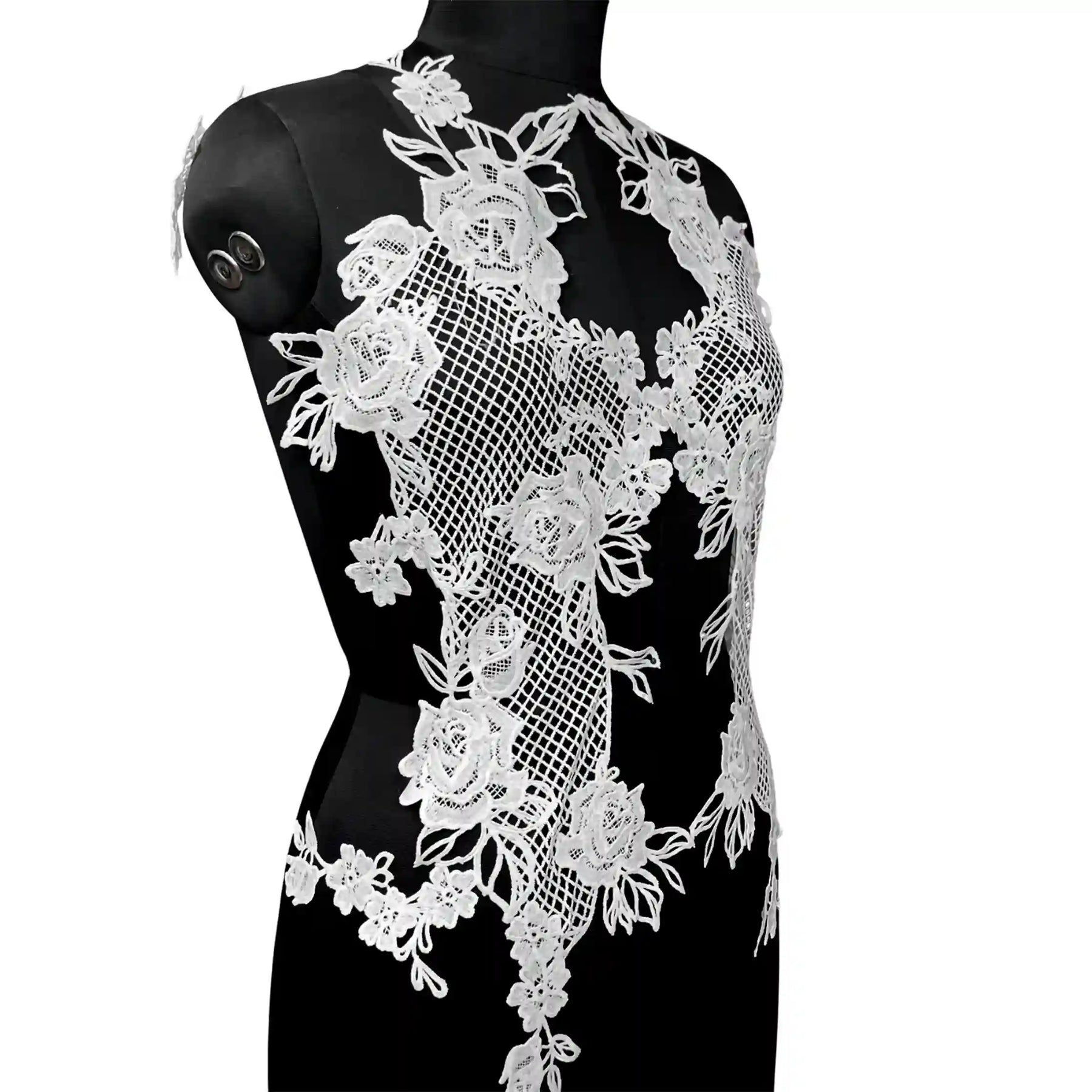 Elevate any garment with this elegant full-body floral lace. Made from premium, skin-friendly material, it features symmetrical panels for a high-fashion look and is ready to sew onto any fabric. Classic white, perfect for dyeing or bridal wear.