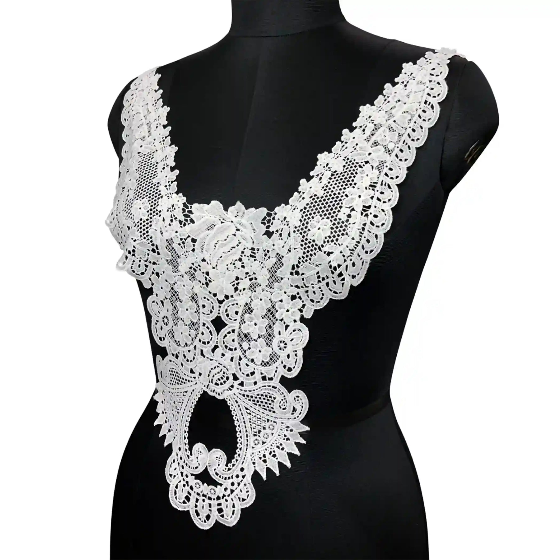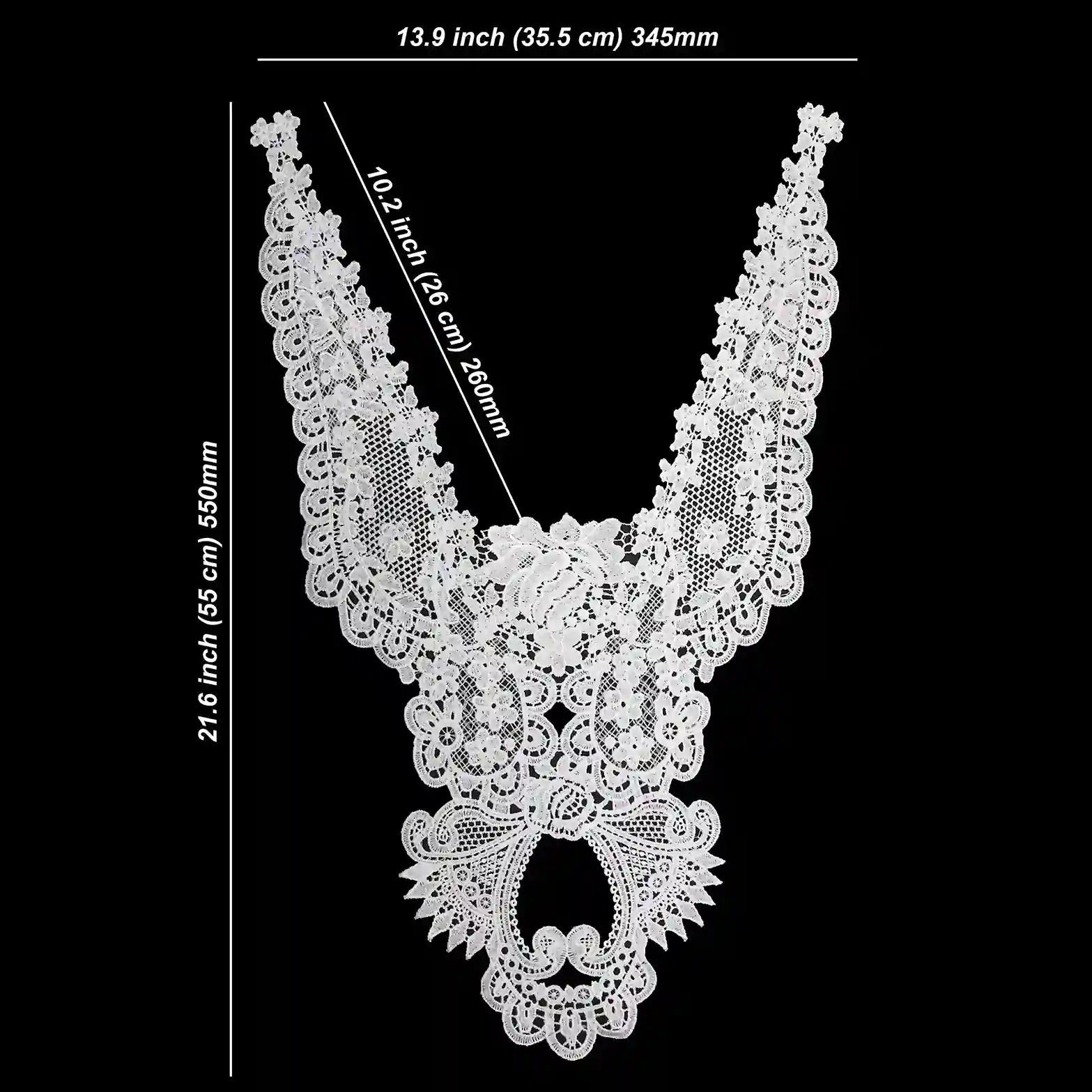 Elevate any garment with this elegant full-body floral lace. Made from premium, skin-friendly material, it features symmetrical panels for a high-fashion look and is ready to sew onto any fabric. Classic white, perfect for dyeing or bridal wear.