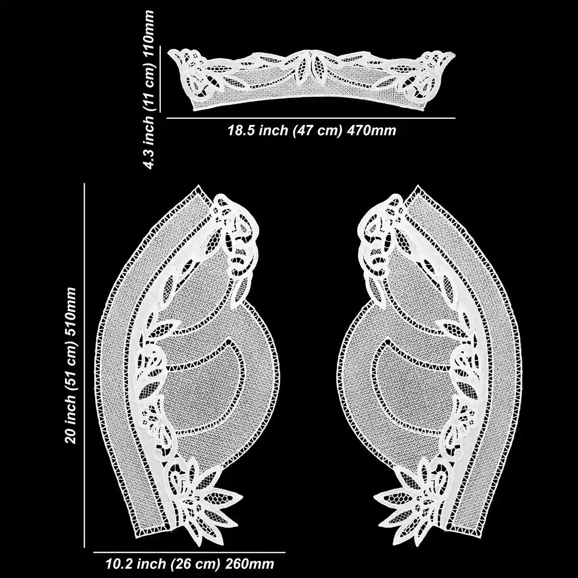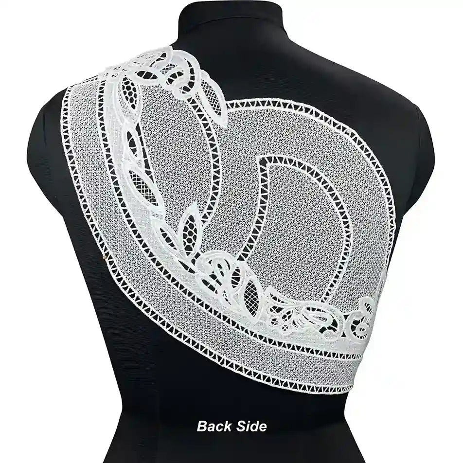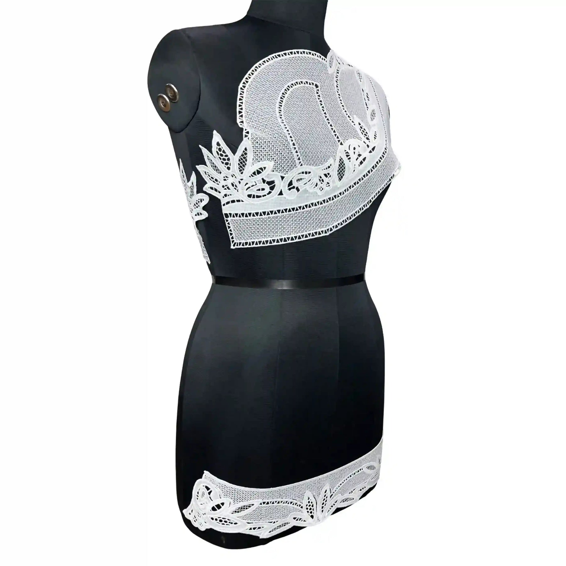 Elevate any garment with this elegant full-body floral lace. Made from premium, skin-friendly material, it features symmetrical panels for a high-fashion look and is ready to sew onto any fabric. Classic white, perfect for dyeing or bridal wear.