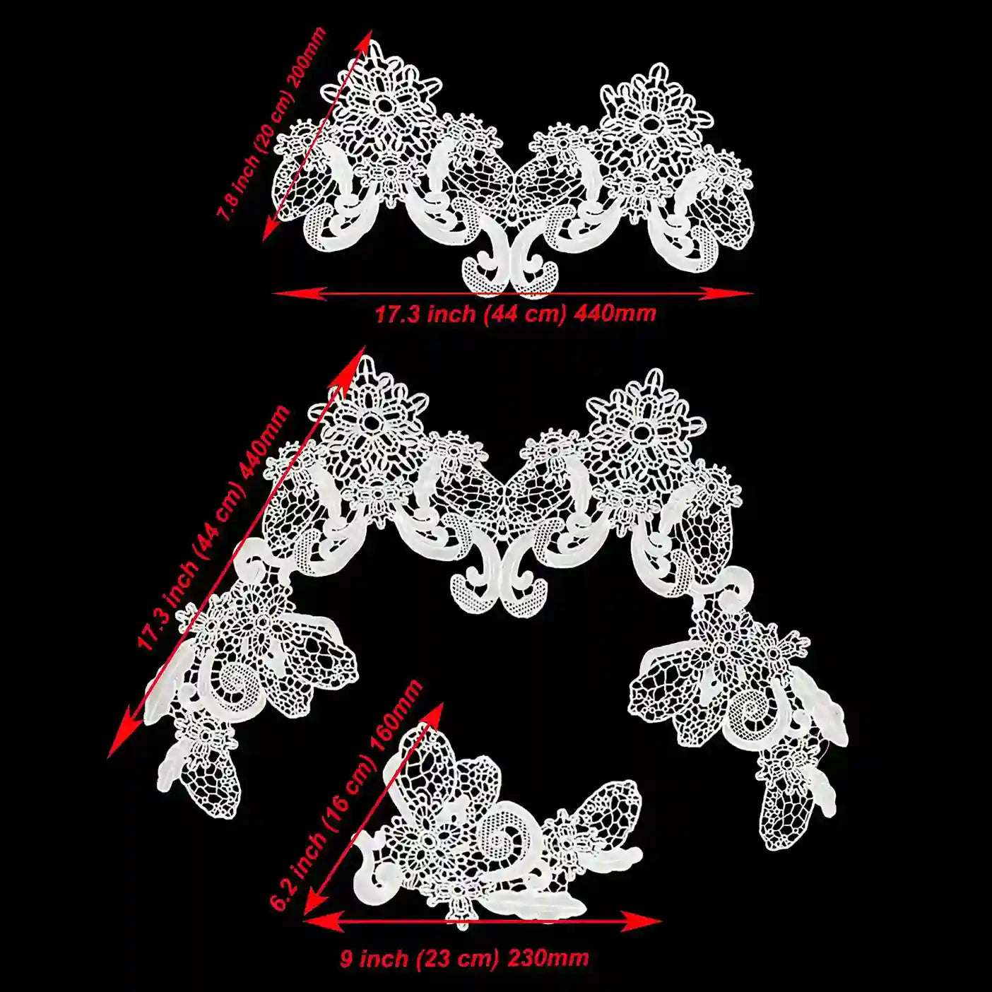 Elevate any garment with this elegant full-body floral lace. Made from premium, skin-friendly material, it features symmetrical panels for a high-fashion look and is ready to sew onto any fabric. Classic white, perfect for dyeing or bridal wear.