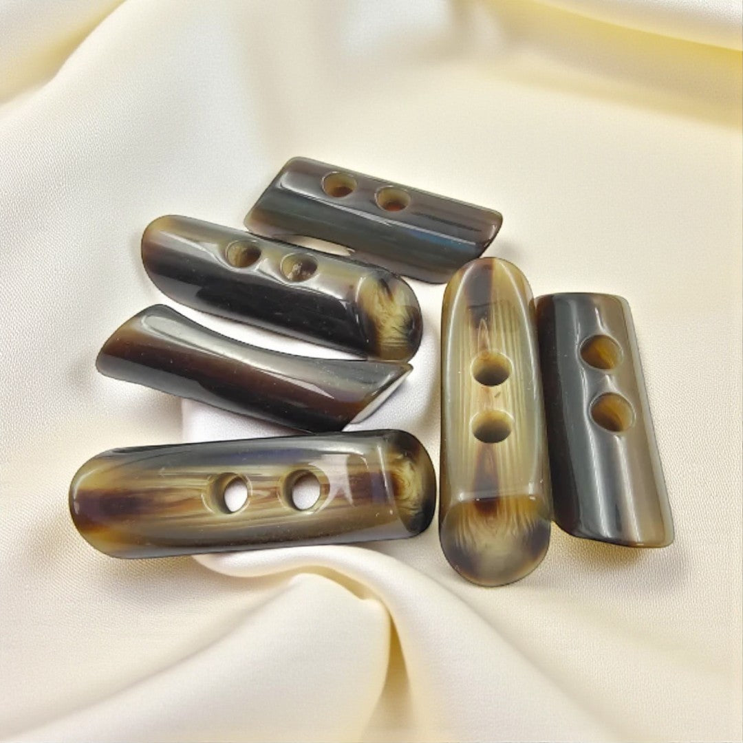 Brown Horn Double Hole Toggle Buttons (Pack Of Six)
