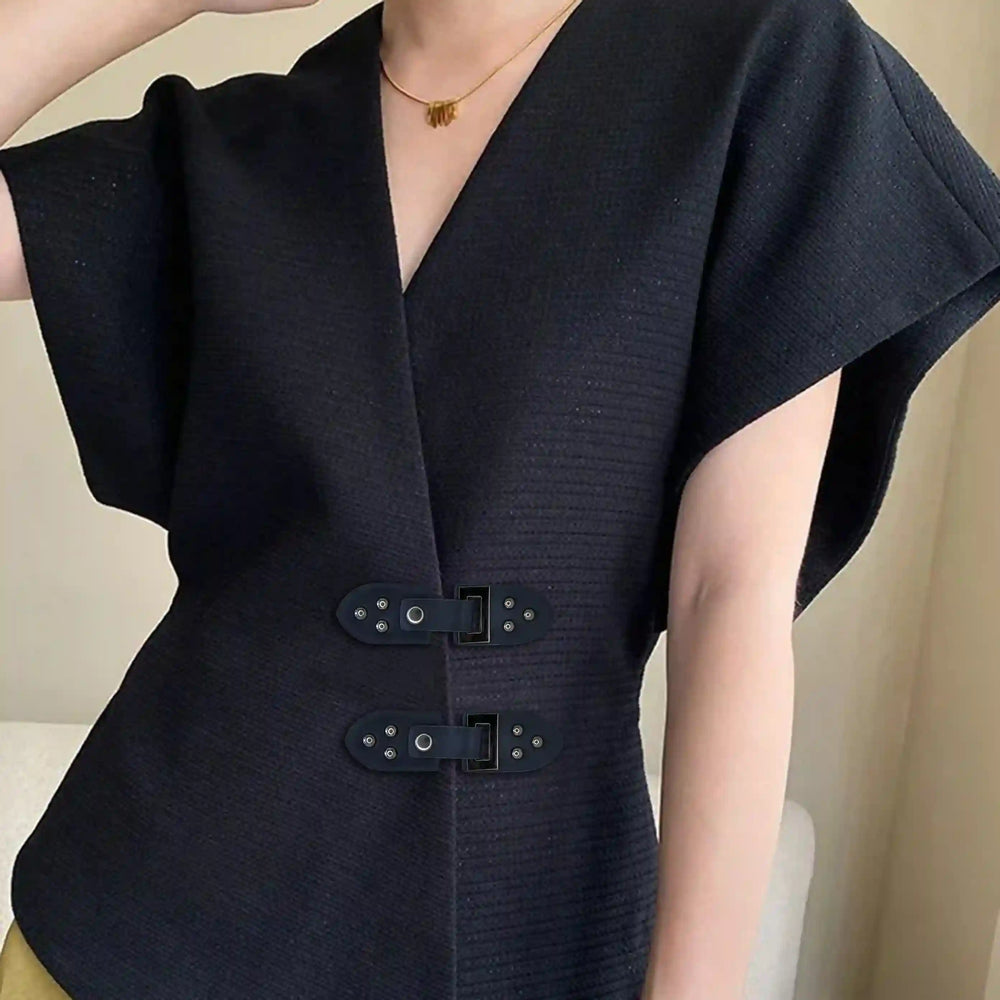 Black PU Snap Belt Buckle With Silver | 2 Piece
