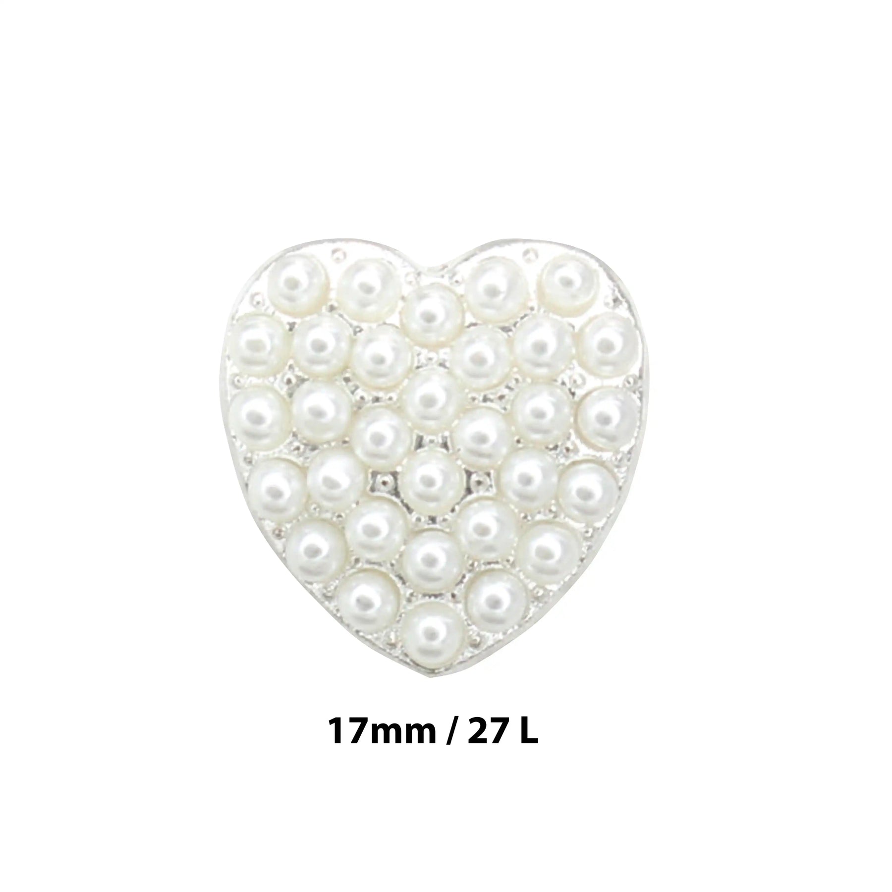 Enhance your garments with Heart Style Pearl Metal Buttons, perfect for adding a premium, eye-catching look. These buttons are both stylish and durable, and come in silver color with an edge-to-edge design, crafted from premium, high-quality metal.
