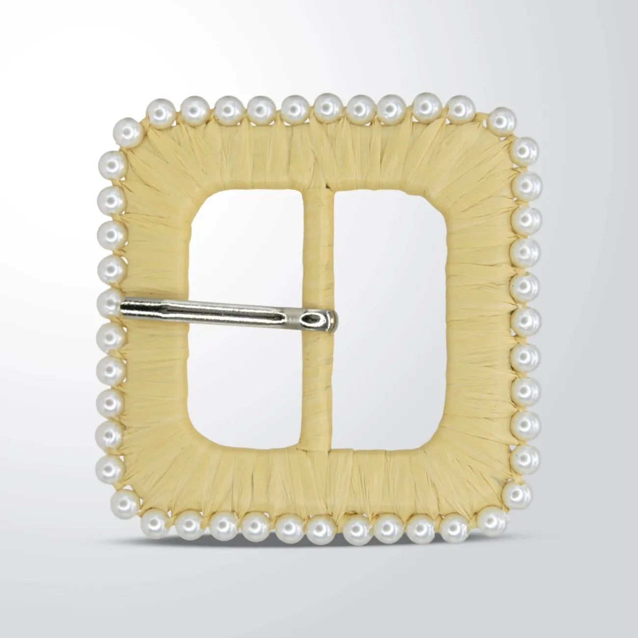 Cream Raffia Square Buckle with Pearl Border | 2.7 inches (7.1cm)